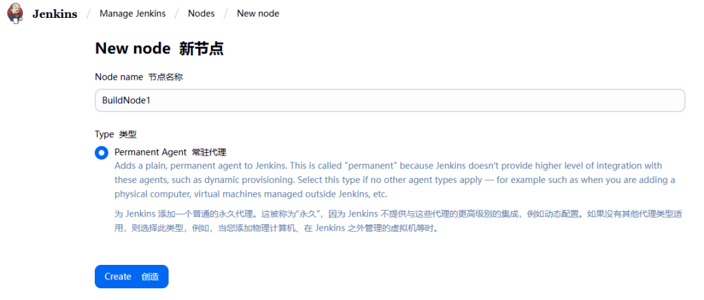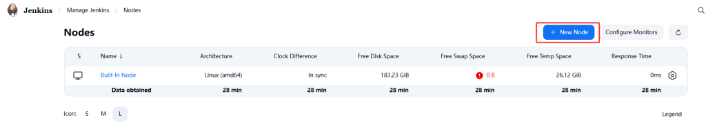 在 Jenkins 后台 Manage Jenkins -> Nodes 添加新节点:
