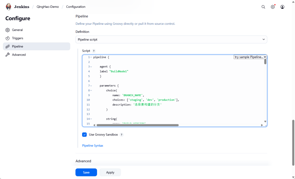 label "BuildNode1" // 指定在哪个节点上运行该流水线